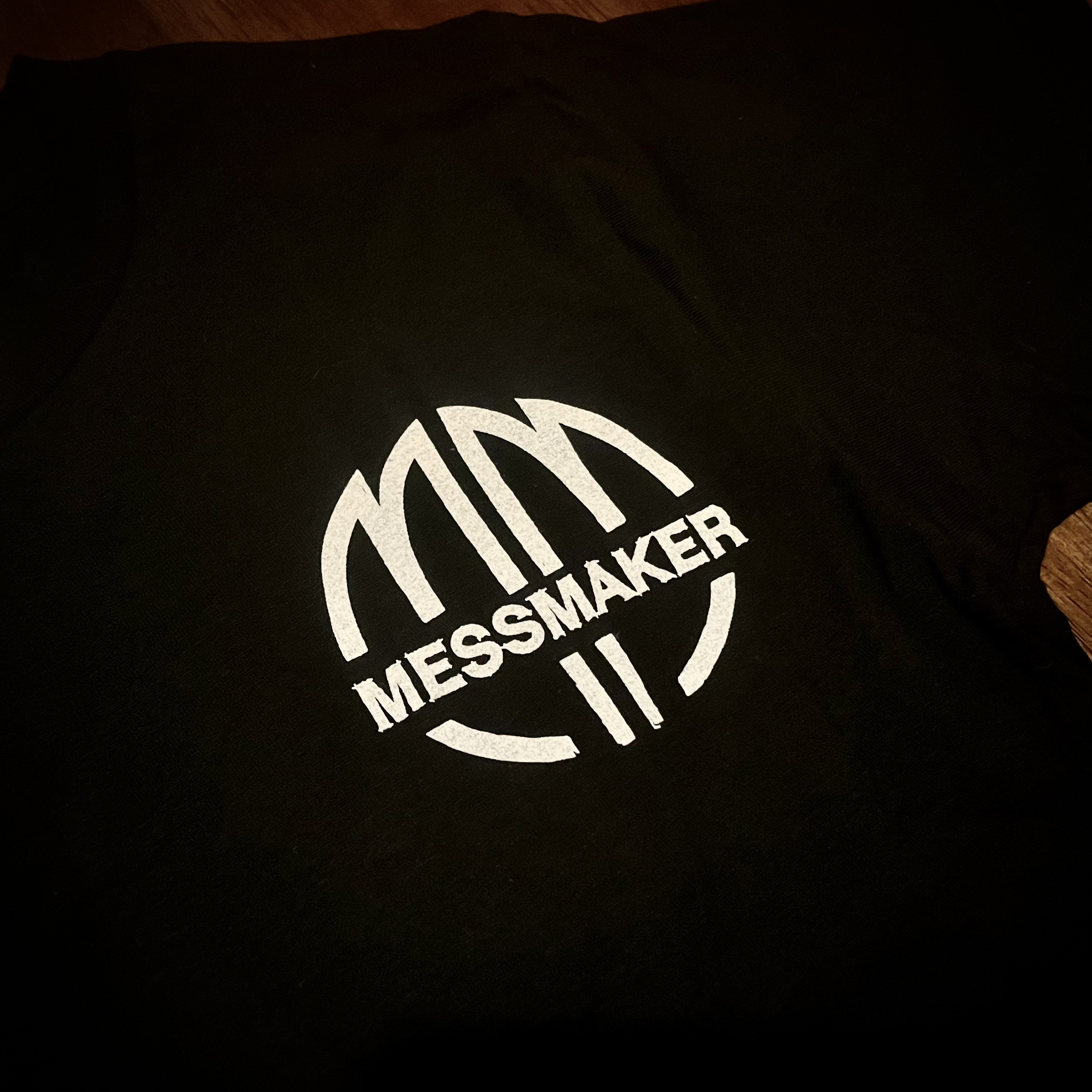 “Dawn’s About to Break” graphic is on back of shirt, MESSMAKER logo on front.
